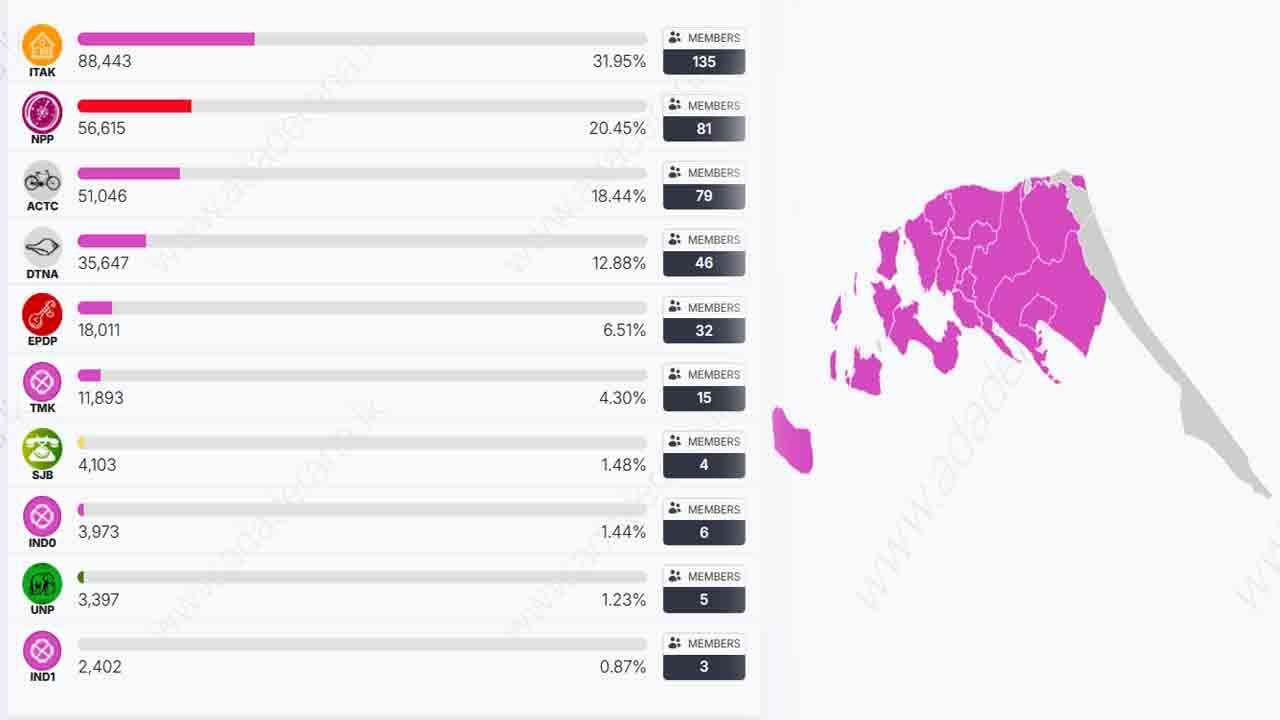 (DTNA) ஜனநாயக தமிழ் தேசிய கூட்டணி - 35,647 வாக்குகள் - 46 உறுப்பினர்கள்